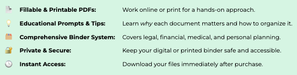 Printable, Fillable Legacy Binder Templates and Educational Guides to Organize Your Life, Documents, and Legacy, All in One Place (Available Nationwide in All 50 States)